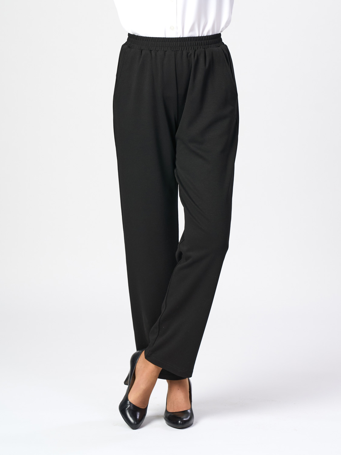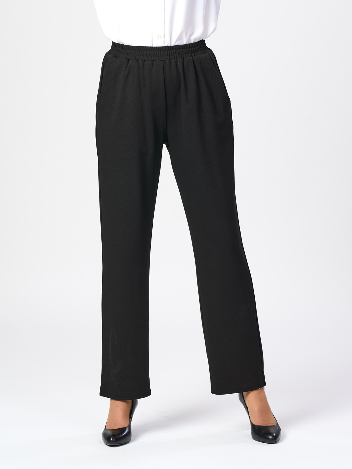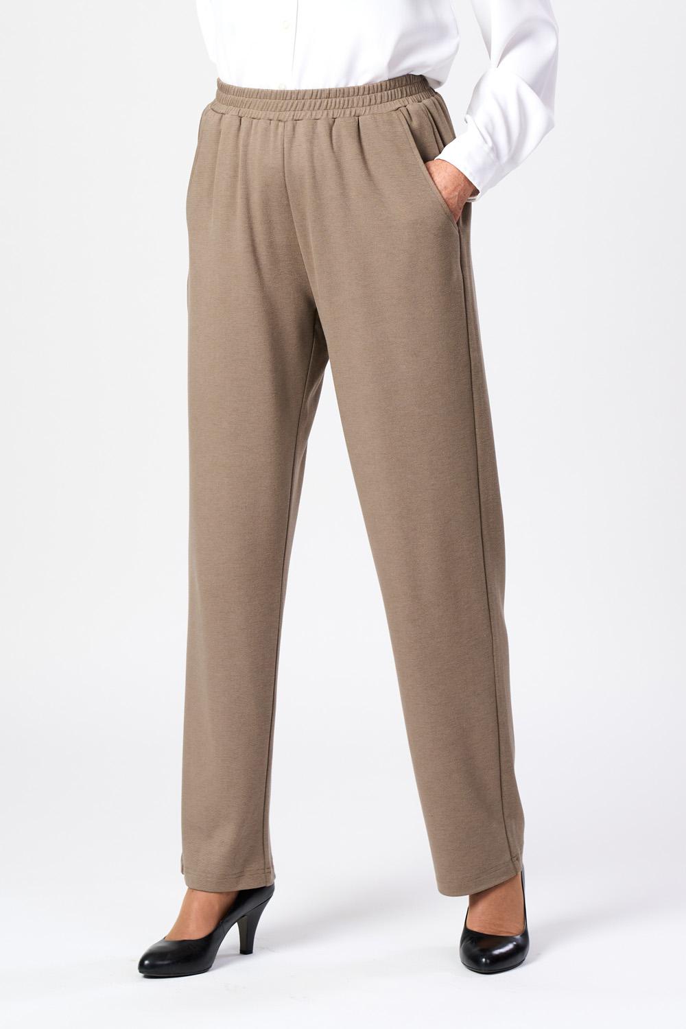 Långbyxor i mjukt och skönt stickat tyg. Med resår runt om i midjan och fickor framtill. Finns i storlekarna S till XXL.