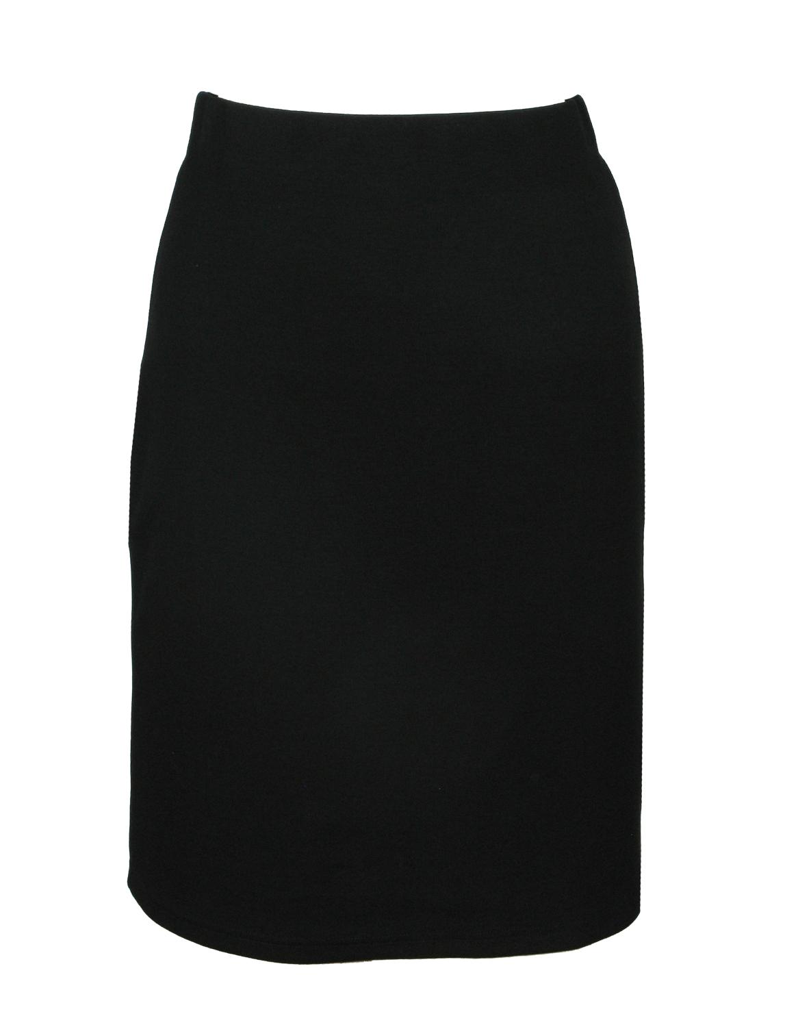 Enfärgad "pennkjol" med brett nedvikt resår i midjan. Tillverkad i Europa, i en lite kraftigare trikå. Finns i storlekarna S till XXL. Färg: Svart.