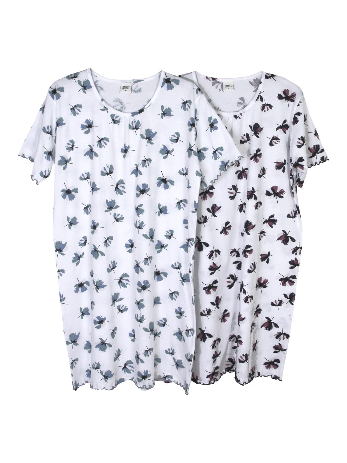 Mönstrat nattlinne i mjuk bomullstrikå. Modellen har rund halsringning och ett rakt avslut nedtill. Dekorsömmar i ärm-slut och nedtill. Finns i storlekarna S till 3XL, i färgerna Vit/Lila och Vit/Mint.