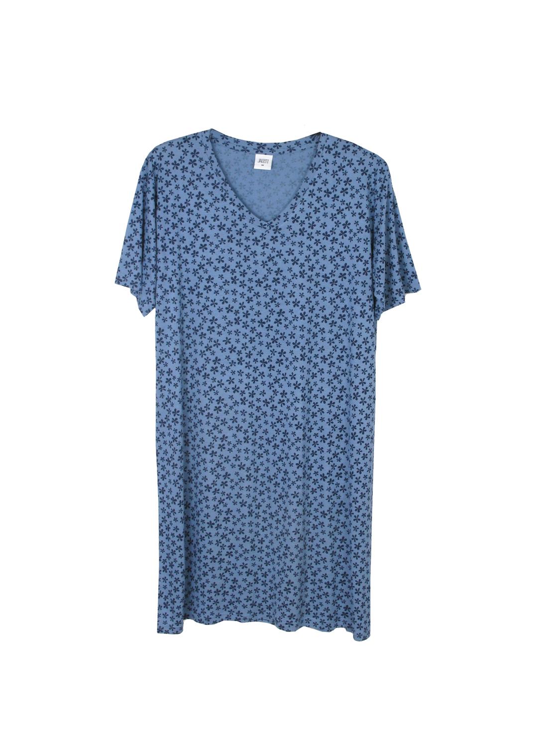 Mönstrat nattlinne med färgad botten. V-ringad halsringning. Sååå skön kvalitét i Bambu-viskos. Finns i storlekarna S till 3XL, i färgen Blå/Marin.