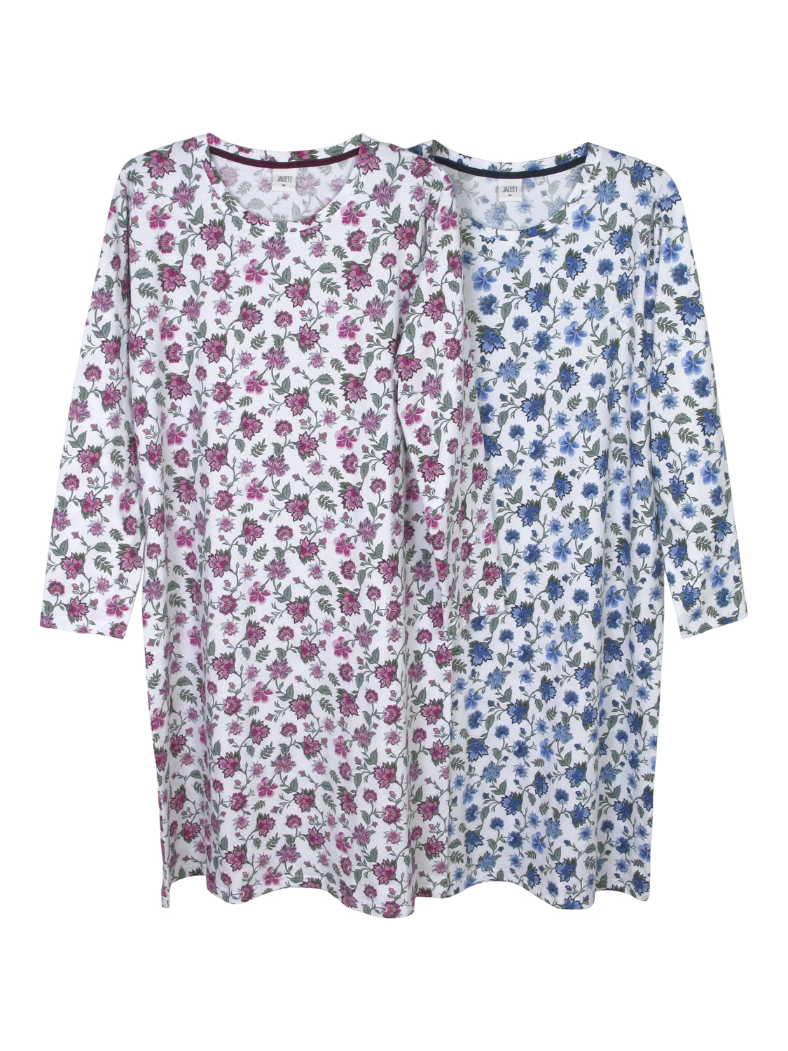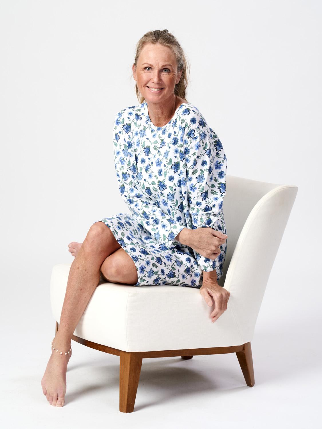 Långärmat nattlinne med tryck, mjuk bomullstrikå. Modellen har rund halsringning och rakt avslut nedtill. Finns i storlekarna S till 3XL, i färgerna Fuxia och Blå.