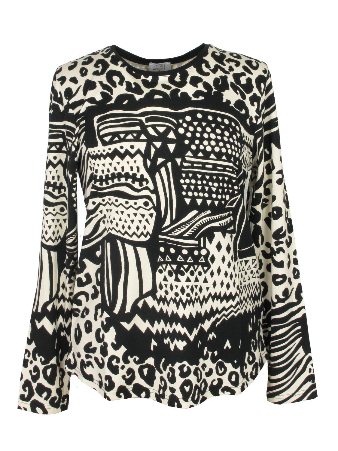 Trikåtopp med lång ärm från Jacett. Rund halsringning och lätt rundad nederkant. Denna topp är tillverkad i Europa, i en mjuk och skön trikå.