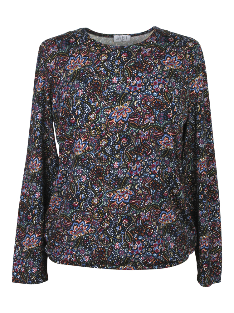 Trikåtopp med lång ärm från Jacett. Rund halsringning och resår i avslut nertill. Denna topp är tillverkad i Europa, i en mjuk och skön trikå av hög kvalitet. Finns i storlekarna S till XXL, färg Multi-färgad.
